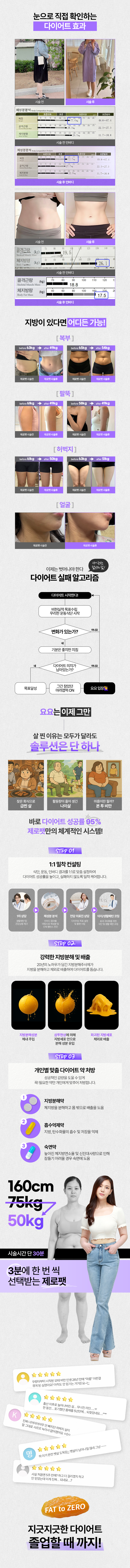 제로팻 지방분해주사는 1주일 주기로 5회 시술하면 지방 분해 및 체중 감량 효과가 극대화 됩니다.
